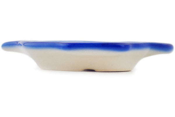 This Polish Pottery Tea Bag or Lemon Plate is handmade and handpainted by the Ceramika Bona factory in Boleslawiec, Poland. Manufacturer item number H1926R. It is ¾" high and measures 4½" by 3¾". The weight of this Tea Bag or Lemon Plate is 0.3 lbs. It is part of the Blue Thistle Beauty Collection.