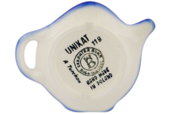 This is a Polish pottery Unikat (Signature) Tea Bag or Lemon Plate, which means that it has been hand painted with both sponges and brushes and it is signed by the artist who painted it. Unikat pieces are the most intricate works of art. Larger Unikat items take hours of very careful work to finish.