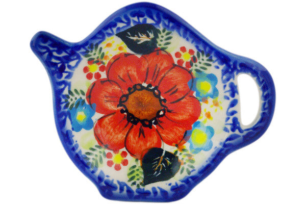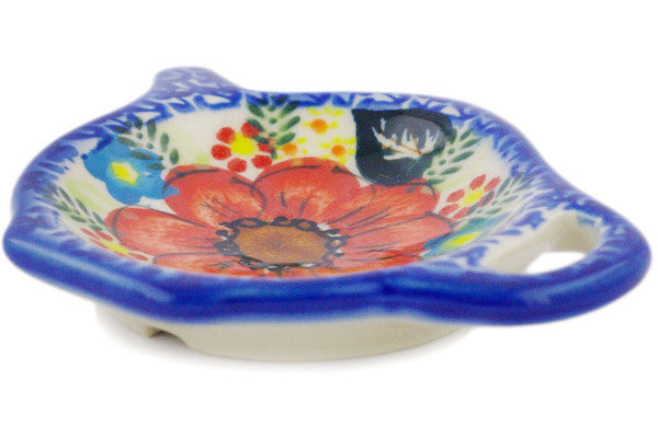 This Polish Pottery Tea Bag or Lemon Plate is handmade and handpainted by the Ceramika Bona factory in Boleslawiec, Poland. Manufacturer item number H0642F. It is ¾" high and measures 4½" by 3¾". The weight of this Tea Bag or Lemon Plate is 0.3 lbs. It is part of the Bold Red Poppies Collection.