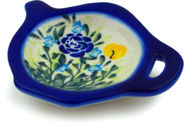 This Polish Pottery Tea Bag or Lemon Plate is handmade and handpainted by the Ceramika Nina factory in Boleslawiec, Poland. Manufacturer item number H0324P. It is ¾" high and measures 4½" by 3¾". The weight of this Tea Bag or Lemon Plate is 0.3 lbs. It is part of the Bright Blooms Collection.