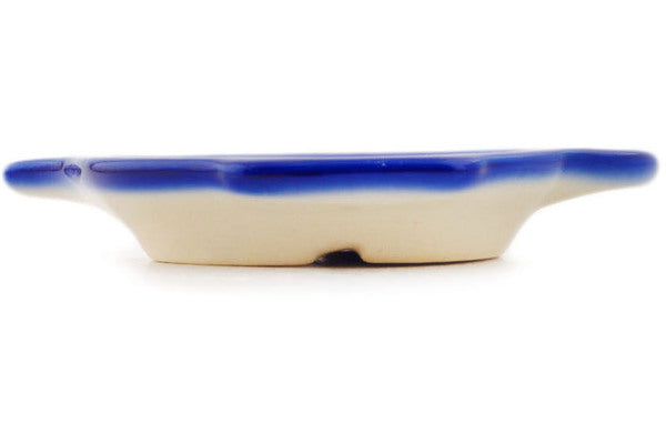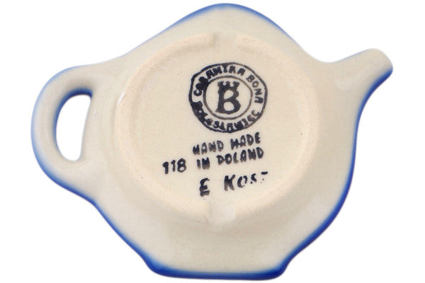 This Polish Pottery Tea Bag or Lemon Plate is handmade and handpainted by the Ceramika Bona factory in Boleslawiec, Poland. Manufacturer item number H4821Q. It is ¾" high and measures 4½" by 3¾". The weight of this Tea Bag or Lemon Plate is 0.3 lbs. It is part of the Flower Star Collection.