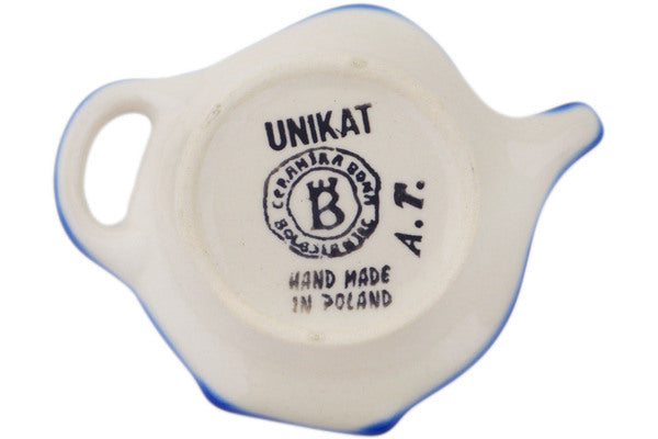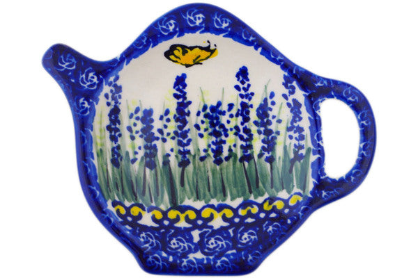 This Polish Pottery Tea Bag or Lemon Plate is handmade and handpainted by the Ceramika Bona factory in Boleslawiec, Poland. Manufacturer item number H2852P. It is ¾" high and measures 4½" by 3¾". The weight of this Tea Bag or Lemon Plate is 0.2 lbs. It is part of the Garden Whispers Collection.