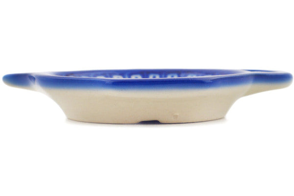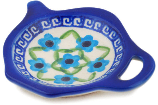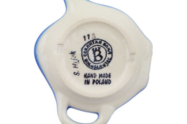 This Polish Pottery Tea Bag or Lemon Plate is handmade and handpainted by the Ceramika Bona factory in Boleslawiec, Poland. Manufacturer item number H6639P. It is ¾" high and measures 4½" by 3¾". The weight of this Tea Bag or Lemon Plate is 0.3 lbs. It is part of the Greek Daisies Collection.