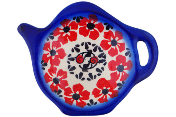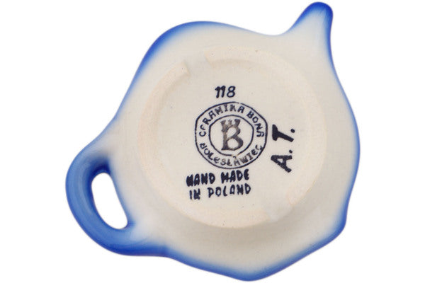 This Polish Pottery Tea Bag or Lemon Plate is handmade and handpainted by the Ceramika Bona factory in Boleslawiec, Poland. Manufacturer item number H7119Q. It is ¾" high and measures 4½" by 3¾". The weight of this Tea Bag or Lemon Plate is 0.3 lbs. It is part of the Hawaiian Bliss Collection.