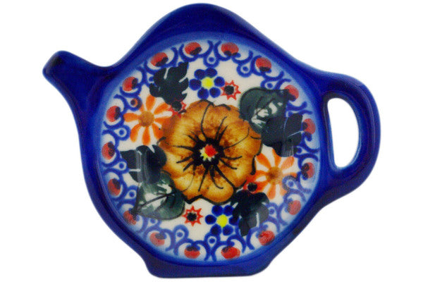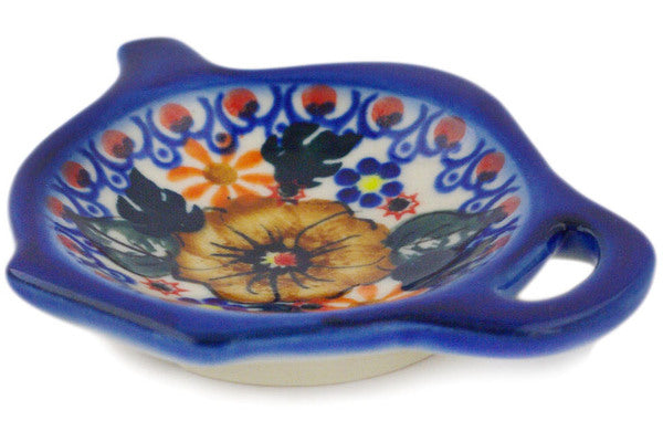 This Polish Pottery Tea Bag or Lemon Plate is handmade and handpainted by the Ceramika Bona factory in Boleslawiec, Poland. Manufacturer item number H5694R. It is ¾" high and measures 4½" by 3¾". The weight of this Tea Bag or Lemon Plate is 0.3 lbs. It is part of the Mauve Poppies Collection.