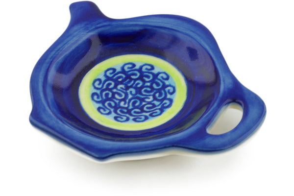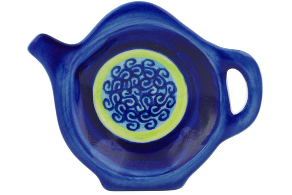 This Polish Pottery Tea Bag or Lemon Plate is handmade and handpainted by the Ceramika Bona factory in Boleslawiec, Poland. Manufacturer item number H4548J. It is ¾" high and measures 4½" by 3¾". The weight of this Tea Bag or Lemon Plate is 0.3 lbs. It is part of the Midnight Eclipse Collection.