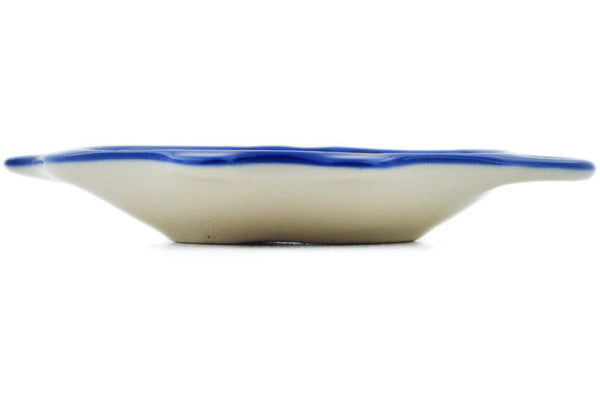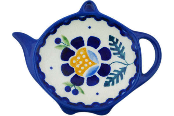 This Polish Pottery Tea Bag or Lemon Plate is handmade and handpainted by the Manufaktura factory in Boleslawiec, Poland. Manufacturer item number H1258O. It is ½" high and measures 4¼" by 3½". The weight of this Tea Bag or Lemon Plate is 0.2 lbs. It is part of the Orange And Blue Flower Collection.