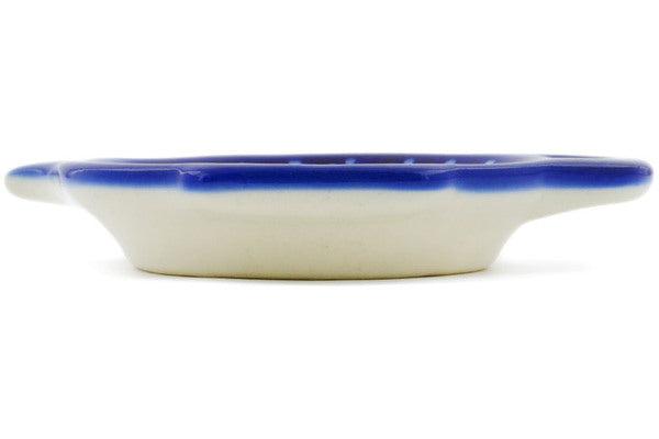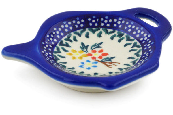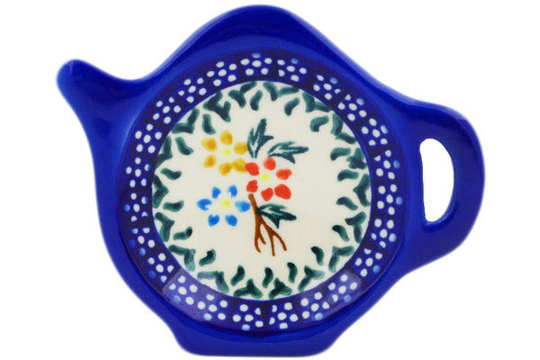 This Polish Pottery Tea Bag or Lemon Plate is handmade and handpainted by the Ceramika Bona factory in Boleslawiec, Poland. Manufacturer item number H0457K. It is ¾" high and measures 4½" by 3¾". The weight of this Tea Bag or Lemon Plate is 0.3 lbs. It is part of the Spring Flower Ring Collection.