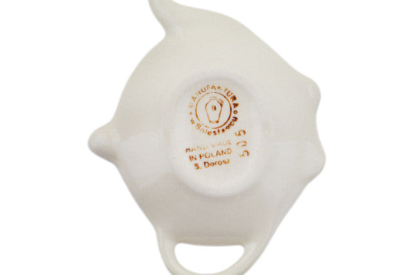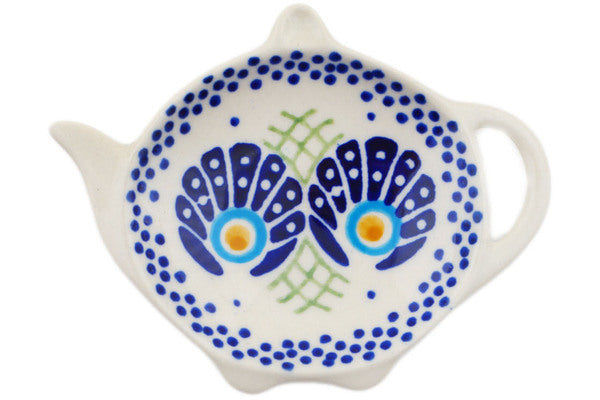 This Polish Pottery Tea Bag or Lemon Plate is handmade and handpainted by the Manufaktura factory in Boleslawiec, Poland. Manufacturer item number H1127O. It is ½" high and measures 4¼" by 3½". The weight of this Tea Bag or Lemon Plate is 0.2 lbs. It is part of the Tail Feathers Collection.