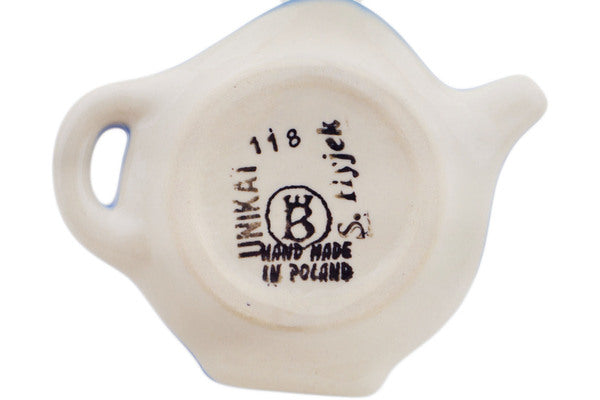 This is a Polish pottery Unikat (Signature) Tea Bag or Lemon Plate, which means that it has been hand painted with both sponges and brushes and it is signed by the artist who painted it. Unikat pieces are the most intricate works of art. Larger Unikat items take hours of very careful work to finish.