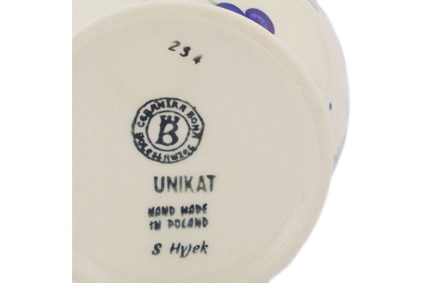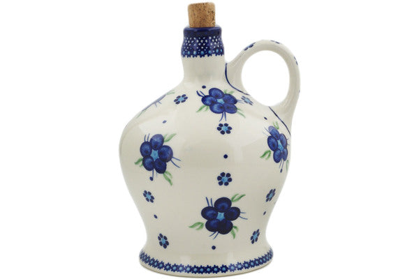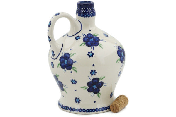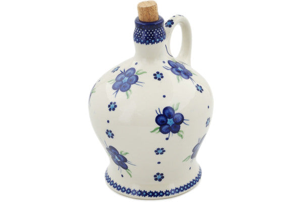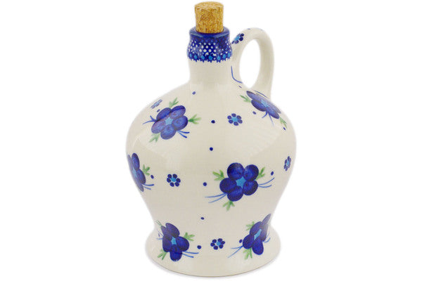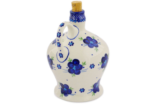 This Polish Pottery Bottle is handmade and handpainted by the Ceramika Bona factory in Boleslawiec, Poland. Manufacturer item number H7527K. It is 8" high and measures 6" by 5½". The capacity of this Bottle is 39.90 oz (brimful) and it weighs 2.1 lbs. It is part of the Bleu-Belle Fleur Collection.