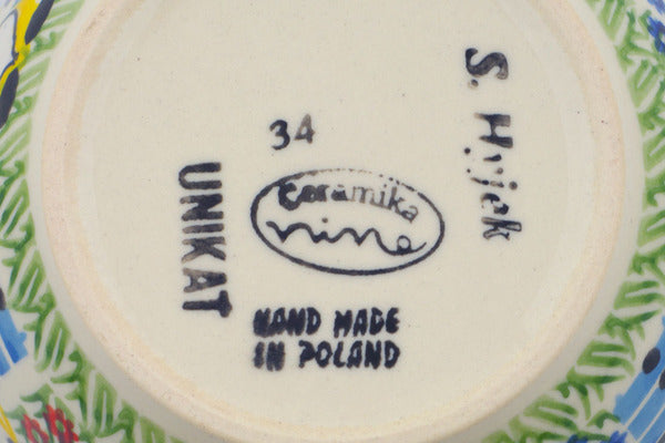 This is a Polish pottery Unikat (Signature) Bowl, which means that it has been hand painted with both sponges and brushes and it is signed by the artist who painted it. Unikat pieces are the most intricate works of art. Larger Unikat items take hours of very careful work to finish.