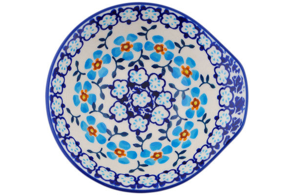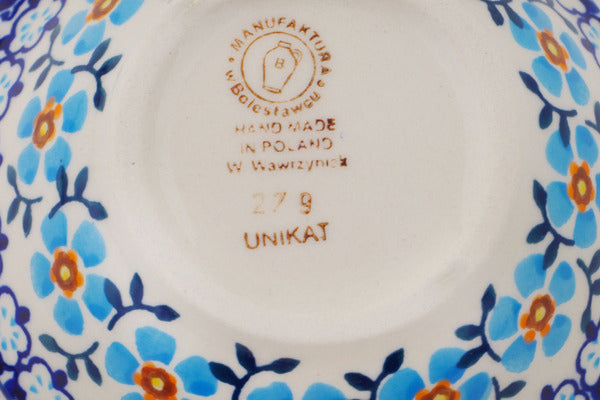 This Polish Pottery Bowl is handmade and handpainted by the Manufaktura factory in Boleslawiec, Poland. Manufacturer item number H8224P. It is 1¾" high and measures 5¼" by 5". The capacity of this Bowl is 5.27 oz (brimful) and it weighs 0.5 lbs. It is part of the Blue Chain Collection.