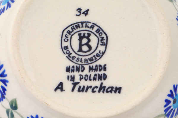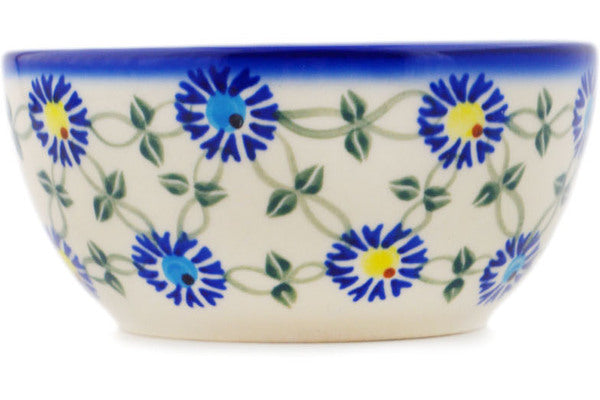 This Polish Pottery Bowl is handmade and handpainted by the Ceramika Bona factory in Boleslawiec, Poland. Manufacturer item number H1900R. It is 2¼" high and measures 5¼" by 5¼". The capacity of this Bowl is 13.53 oz (brimful) and it weighs 0.8 lbs. It is part of the Blue Thistle Beauty Collection.