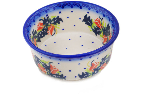 This Polish Pottery Bowl is handmade and handpainted by the Ceramika Bona factory in Boleslawiec, Poland. Manufacturer item number H8812Q. It is 2¼" high and measures 5¼" by 5¼". The capacity of this Bowl is 15.49 oz (brimful) and it weighs 0.8 lbs. It is part of the California Poppies Collection.