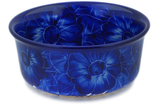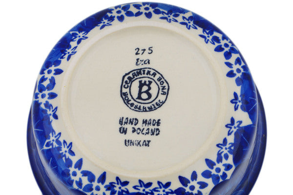 This Polish Pottery Bowl is handmade and handpainted by the Ceramika Bona factory in Boleslawiec, Poland. Manufacturer item number H6330O. It is 2¼" high and measures 5¼" by 5¼". The capacity of this Bowl is 15.49 oz (brimful) and it weighs 0.8 lbs. It is part of the Divine Cobalt Collection.