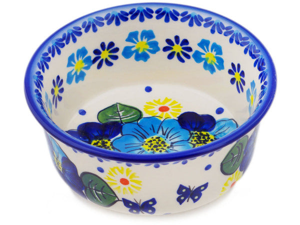 This Polish Pottery Bowl is handmade and handpainted by the Ceramika Bona factory in Boleslawiec, Poland. Manufacturer item number H3163Q. It is 2¼" high and measures 5¼" by 5¼". The capacity of this Bowl is 15.49 oz (brimful) and it weighs 0.8 lbs. It is part of the Endless Summer Collection.