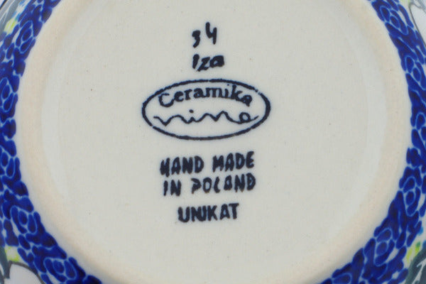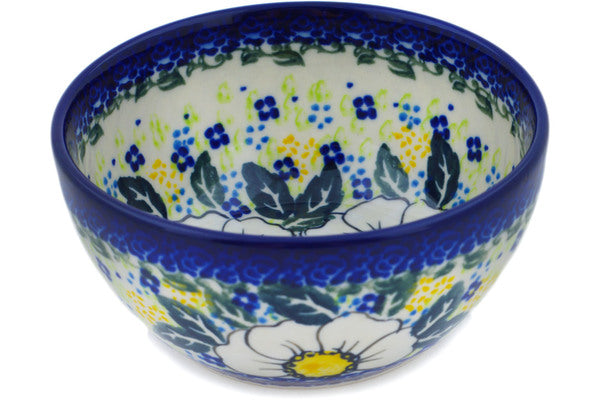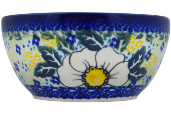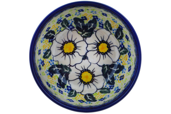 This Polish Pottery Bowl is handmade and handpainted by the Ceramika Nina factory in Boleslawiec, Poland. Manufacturer item number H0843P. It is 2¼" high and measures 5¼" by 5¼". The capacity of this Bowl is 13.53 oz (brimful) and it weighs 0.8 lbs. It is part of the Floral Fantasy Collection.