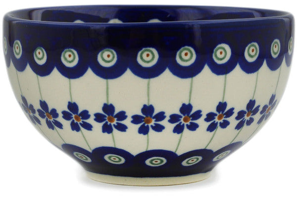 This Polish Pottery Bowl is handmade and handpainted by the Zaklady Ceramiczne factory in Boleslawiec, Poland. Manufacturer item number H1345L. It is 2½" high and measures 4¾" by 4¾". The weight of this Bowl is 0.6 lbs. It is part of the Flowering Peacock Collection.