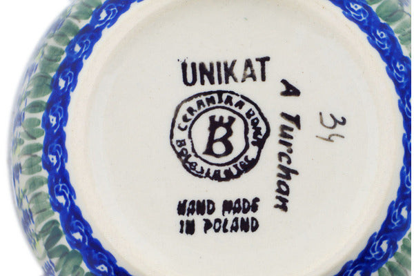 This Polish Pottery Bowl is handmade and handpainted by the Ceramika Bona factory in Boleslawiec, Poland. Manufacturer item number H1050P. It is 2¼" high and measures 5¼" by 5¼". The capacity of this Bowl is 13.53 oz (brimful) and it weighs 0.8 lbs. It is part of the Garden Whispers Collection.