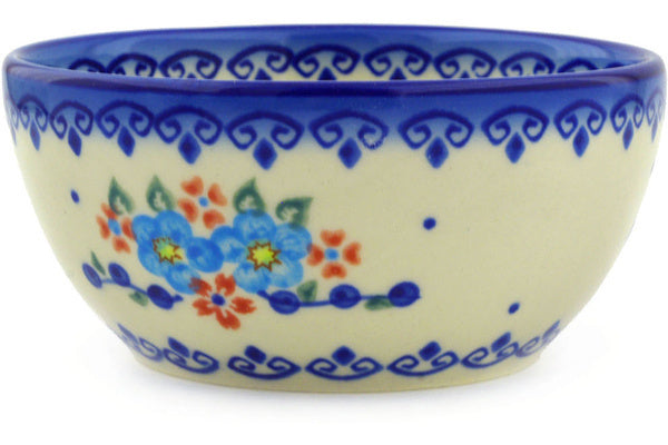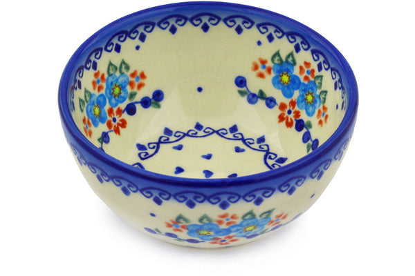 This Polish Pottery Bowl is handmade and handpainted by the Ceramika Bona factory in Boleslawiec, Poland. Manufacturer item number H7019E. It is 2¼" high and measures 5¼" by 5¼". The capacity of this Bowl is 13.53 oz (brimful) and it weighs 0.8 lbs. It is part of the Hearts And Flowers Collection.