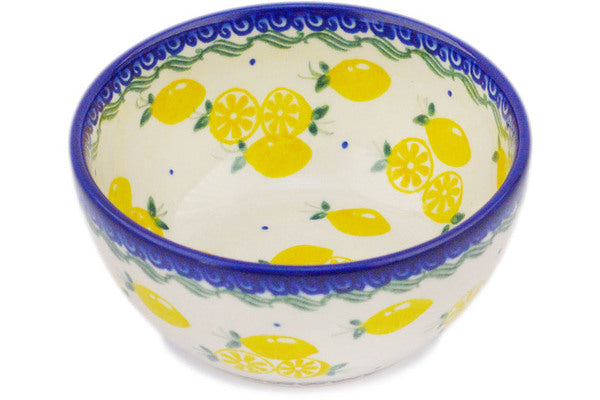 This Polish Pottery Bowl is handmade and handpainted by the Ceramika Bona factory in Boleslawiec, Poland. Manufacturer item number H3091R. It is 2¼" high and measures 5¼" by 5¼". The capacity of this Bowl is 13.53 oz (brimful) and it weighs 0.8 lbs. It is part of the Main Squeeze Collection.
