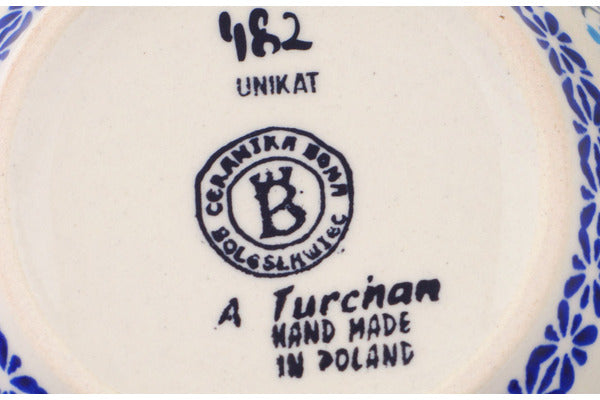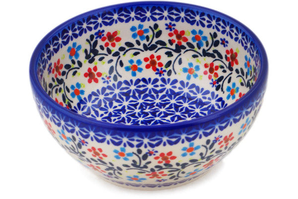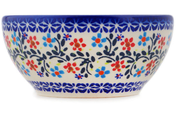 This Polish Pottery Bowl is handmade and handpainted by the Ceramika Bona factory in Boleslawiec, Poland. Manufacturer item number H5534P. It is 2½" high and measures 5¼" by 5¼". The capacity of this Bowl is 16.23 oz (brimful) and it weighs 0.7 lbs. It is part of the Neon Wreath Collection.