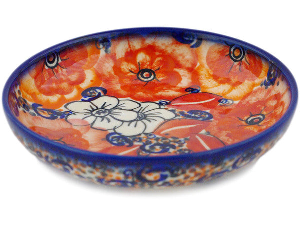 This Polish Pottery Bowl is handmade and handpainted by the Ceramika Bona factory in Boleslawiec, Poland. Manufacturer item number H5865R. It is 1¼" high and measures 5¼" by 5¼". The capacity of this Bowl is 5.58 oz (brimful) and it weighs 0.5 lbs. It is part of the Poppy Passion Collection.