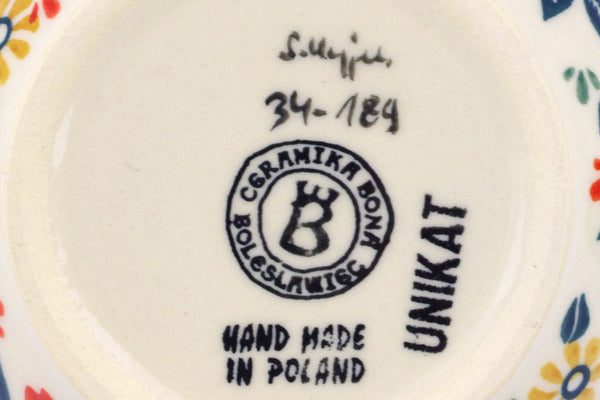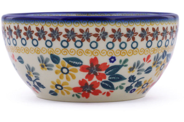 This Polish Pottery Bowl is handmade and handpainted by the Ceramika Bona factory in Boleslawiec, Poland. Manufacturer item number H2268J. It is 2¼" high and measures 5¼" by 5¼". The capacity of this Bowl is 13.53 oz (brimful) and it weighs 0.8 lbs. It is part of the Red Anemone Meadow Collection.