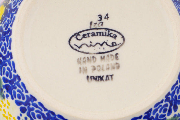 This is a Polish pottery Unikat (Signature) Bowl, which means that it has been hand painted with both sponges and brushes and it is signed by the artist who painted it. Unikat pieces are the most intricate works of art. Larger Unikat items take hours of very careful work to finish.