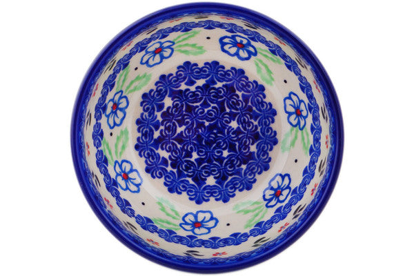 This Polish Pottery Bowl is handmade and handpainted by the Ceramika Bona factory in Boleslawiec, Poland. Manufacturer item number H1943R. It is 2¼" high and measures 5¼" by 5¼". The capacity of this Bowl is 13.53 oz (brimful) and it weighs 0.8 lbs. It is part of the Sweet Day Collection.