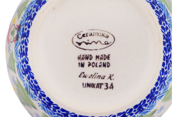 This Polish Pottery Bowl is handmade and handpainted by the Ceramika Nina factory in Boleslawiec, Poland. Manufacturer item number H1814P. It is 2¼" high and measures 5¼" by 5¼". The capacity of this Bowl is 13.53 oz (brimful) and it weighs 0.8 lbs. It is part of the Twinkle Twinkle Little Gnome Collection.