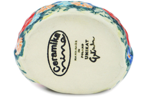 This is a Polish pottery Unikat (Signature) Candle Holder, which means that it has been hand painted with both sponges and brushes and it is signed by the artist who painted it. Unikat pieces are the most intricate works of art. Larger Unikat items take hours of very careful work to finish.