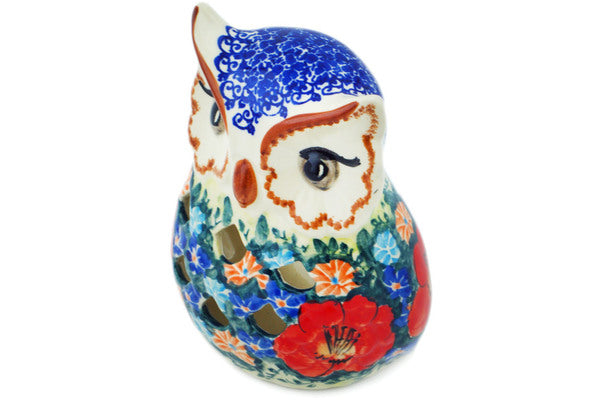 This Polish Pottery Candle Holder is handmade and handpainted by the Kaleta Ceramics factory in Boleslawiec, Poland. Manufacturer item number H6018N. It is 5½" high and measures 4½" by 3¼". The weight of this Candle Holder is 1.0 lbs. It is part of the Pond Flowers Collection.