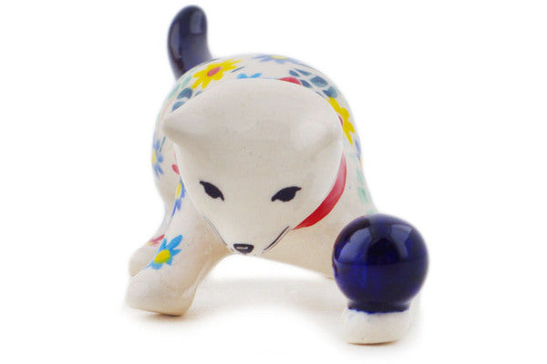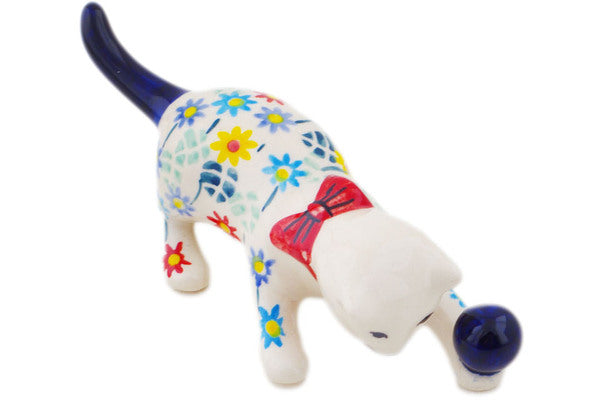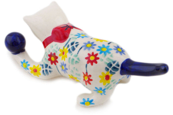 This Polish Pottery Cat Figurine is handmade and handpainted by the Manufaktura factory in Boleslawiec, Poland. Manufacturer item number H8539Q. It is 2" high and measures 5¼" by 1¾". The weight of this Cat Figurine is 0.2 lbs. It is part of the Primary Spring Collection.