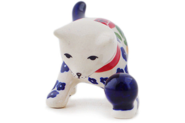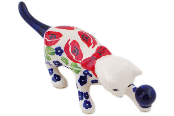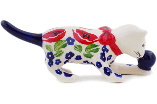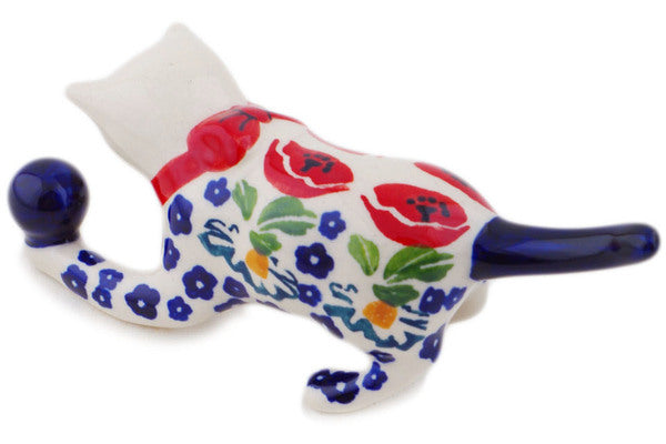 This Polish Pottery Cat Figurine is handmade and handpainted by the Manufaktura factory in Boleslawiec, Poland. Manufacturer item number H8590Q. It is 2" high and measures 5¼" by 1¾". The weight of this Cat Figurine is 0.2 lbs. It is part of the Wild Poppies Collection.