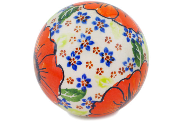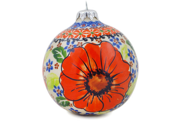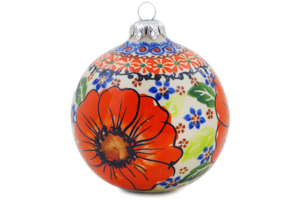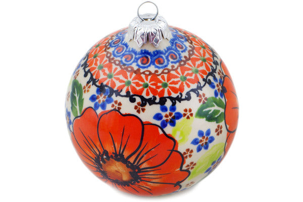 This Polish Pottery Christmas Ball Ornament is handmade and handpainted by the Ceramika Nina factory in Boleslawiec, Poland. Manufacturer item number H9946O. It is 4¾" high and measures 3½" by 3½". The weight of this Christmas Ball Ornament is 0.4 lbs. It is part of the Orange Zinnia Collection.