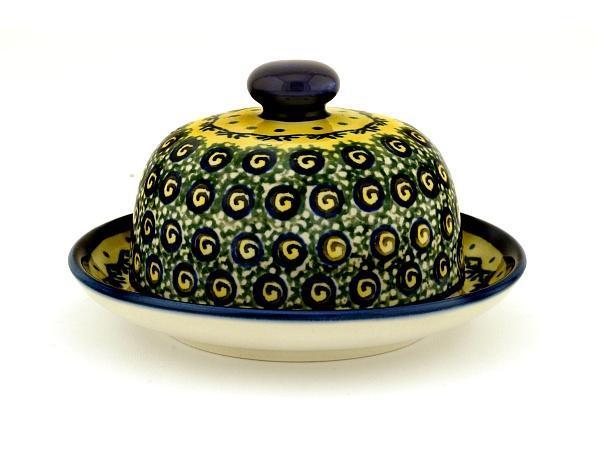 This Polish Pottery Dish with Cover is handmade and handpainted by the Zaklady Ceramiczne factory in Boleslawiec, Poland. Manufacturer item number H0618A. It is 3¼" high and measures 5½" by 5½". The weight of this Dish with Cover is 1.0 lbs. It is part of the Peacock Bumble Bee Collection.