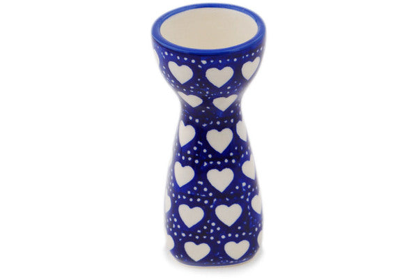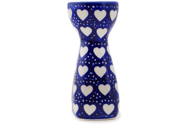 This Polish Pottery Egg Holder is handmade and handpainted by the Manufaktura factory in Boleslawiec, Poland. Manufacturer item number H8605Q. It is 4¾" high and measures 2" by 2". The capacity of this Egg Holder is 1.01 oz (brimful) and it weighs 0.3 lbs. It is part of the Heart's Full Of Love Collection.
