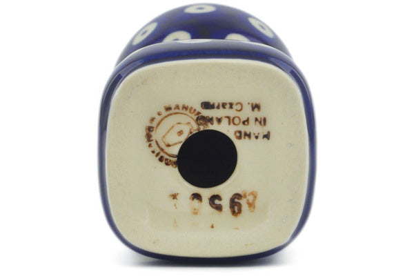 This Polish Pottery Egg Holder is handmade and handpainted by the Manufaktura factory in Boleslawiec, Poland. Manufacturer item number H2624K. It is 4¾" high and measures 2" by 2". The capacity of this Egg Holder is 1.01 oz (brimful) and it weighs 0.3 lbs. It is part of the Mosquito Collection.