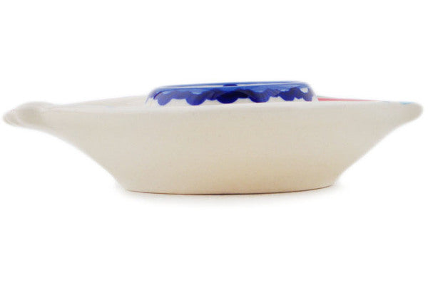 This Polish Pottery Egg Plate is handmade and handpainted by the Manufaktura factory in Boleslawiec, Poland. Manufacturer item number H7125P. It is 1¼" high and measures 5" by 4". The weight of this Egg Plate is 0.4 lbs. It is part of the Orange And Blue Flower Collection.