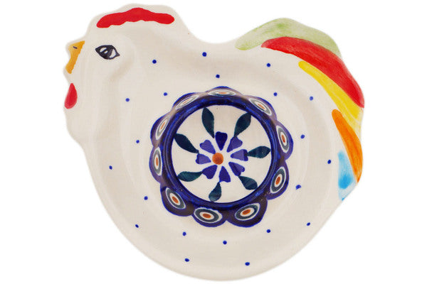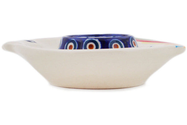 This Polish Pottery Egg Plate is handmade and handpainted by the Manufaktura factory in Boleslawiec, Poland. Manufacturer item number H7408P. It is 1¼" high and measures 5" by 4". The weight of this Egg Plate is 0.4 lbs. It is part of the Peacock Collection.