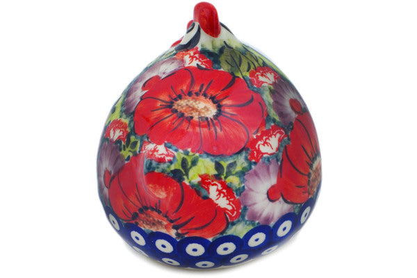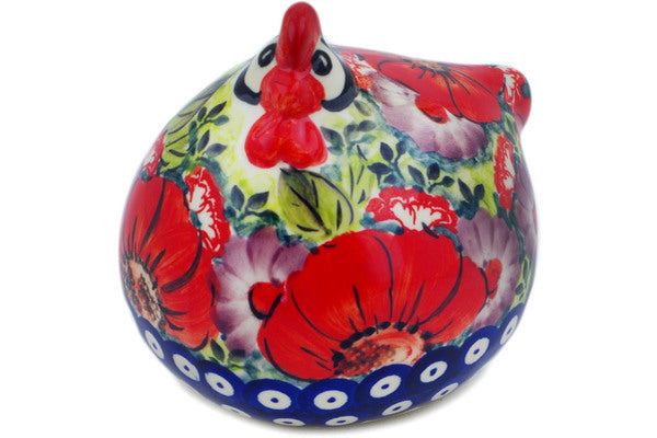 This Polish Pottery Hen Figurine is handmade and handpainted by the Kaleta Ceramics factory in Boleslawiec, Poland. Manufacturer item number H6648P. It is 4½" high and measures 5" by 4¼". The weight of this Hen Figurine is 0.9 lbs. It is part of the Blue Eyes Bouquet Collection.