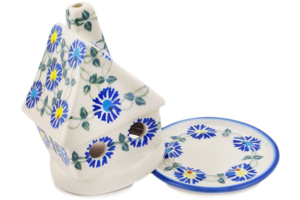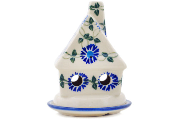 This Polish Pottery House Shaped Candle Holder is handmade and handpainted by the Ceramika Bona factory in Boleslawiec, Poland. Manufacturer item number H1889R. It is 5" high and measures 4¼" by 4". The weight of this House Shaped Candle Holder is 0.8 lbs. It is part of the Blue Thistle Beauty Collection.
