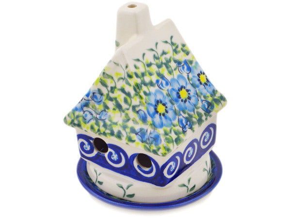 This Polish Pottery House Shaped Candle Holder is handmade and handpainted by the Ceramika Bona factory in Boleslawiec, Poland. Manufacturer item number H2140R. It is 5" high and measures 4¼" by 4". The weight of this House Shaped Candle Holder is 0.8 lbs. It is part of the Gorgeous Morning Glory Collection.