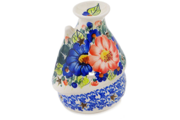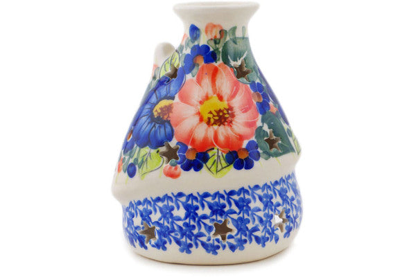 This Polish Pottery House Shaped Candle Holder is handmade and handpainted by the Ceramika Bona factory in Boleslawiec, Poland. Manufacturer item number H7160Q. It is 5¼" high and measures 4" by 3½". The weight of this House Shaped Candle Holder is 0.7 lbs. It is part of the Poppy Trio Collection.