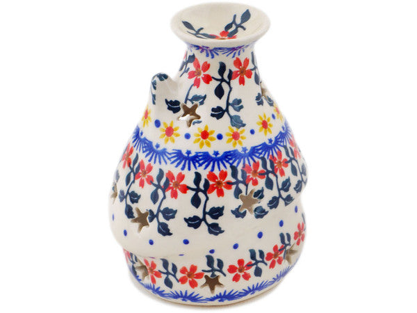 This Polish Pottery House Shaped Candle Holder is handmade and handpainted by the Ceramika Bona factory in Boleslawiec, Poland. Manufacturer item number H4187Q. It is 5¼" high and measures 4" by 3½". The weight of this House Shaped Candle Holder is 0.7 lbs. It is part of the Red Sunflower Collection.
