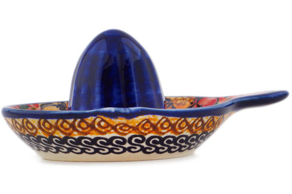 This Polish Pottery Juice Reamer is handmade and handpainted by the Cer-Raf factory in Boleslawiec, Poland. Manufacturer item number H8187I. It is 2¾" high and measures 5" by 4½". The weight of this Juice Reamer is 0.4 lbs. It is part of the Bright Beauty Collection.