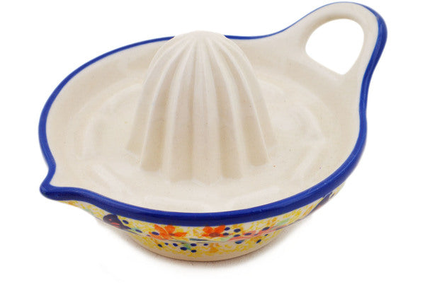 This Polish Pottery Juice Reamer is handmade and handpainted by the Manufaktura factory in Boleslawiec, Poland. Manufacturer item number H1322O. It is 2¾" high and measures 5½" by 4¼". The weight of this Juice Reamer is 0.6 lbs. It is part of the Butterfly Summer Garden Collection.