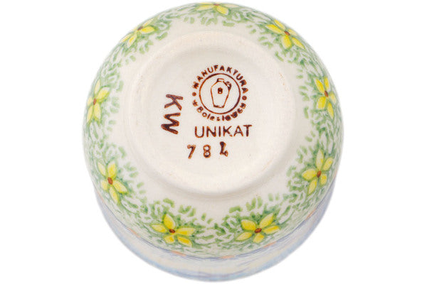 This is a Polish pottery Unikat (Signature) Tumbler, which means that it has been hand painted with both sponges and brushes and it is signed by the artist who painted it. Unikat pieces are the most intricate works of art. Larger Unikat items take hours of very careful work to finish.